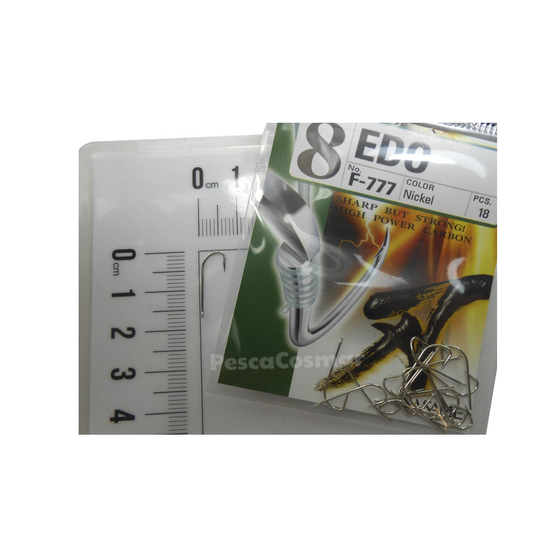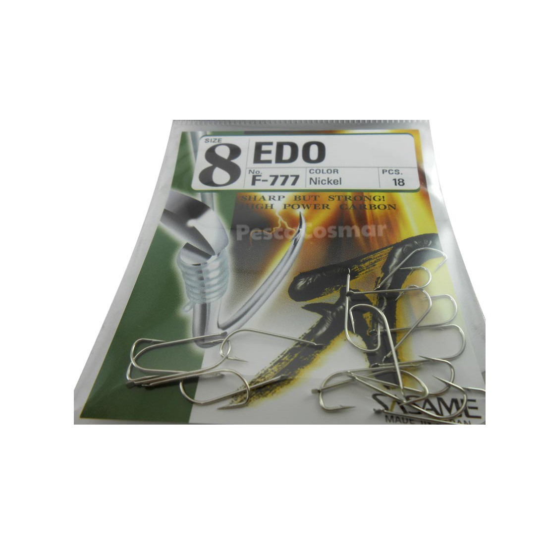 El Sasame Edo F-777 Nickel es un anzuelo niquelado, recto de pala con pata larga tipo cristal.