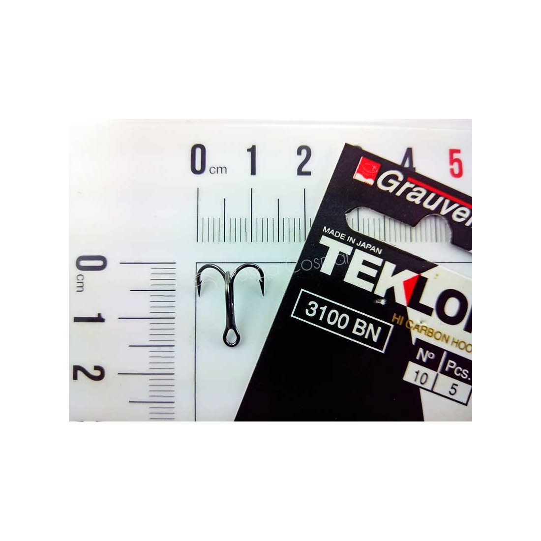 Las Teklon 3100 BN son unas poteras de pesca super reforzadas fabricadas en carbono y de color negro-niquel que son una garantía de éxito frente a los depredadores más potentes. Estos anzuelos triples Teklon 3100 BN se utilizan para sustituir las poteras más débiles de nuestros artificiales que normalmente acaban dobladas porque son finas y blandas lo que supone que se abran con la pérdida de pescado que ello supone muchas veces.