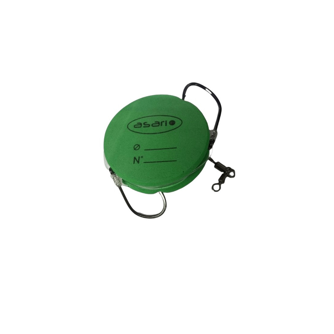 Consta de un anzuelo fijo y uno corredizo, este último es para poder variar la distancia entre anzuelo y anzuelo dependiendo de la medida de cebo vivo que queramos montar.