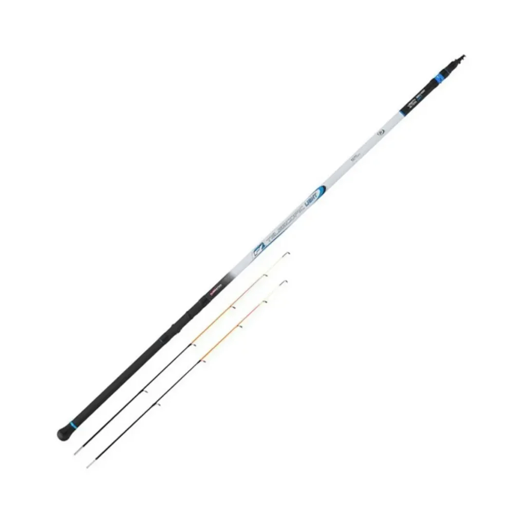 Caña telescópica de carbono con módulo intermedio, muy fina y equilibrada. Está equipada con dos punteras de fibra de vidrio de diferente potencia y sensibilidad y es adecuada para la pesca al volantín y a la deriva de herreras, doradas, sargos y bremas. Empuñadura en Shrink Rubber y portacarrete ergonómico.