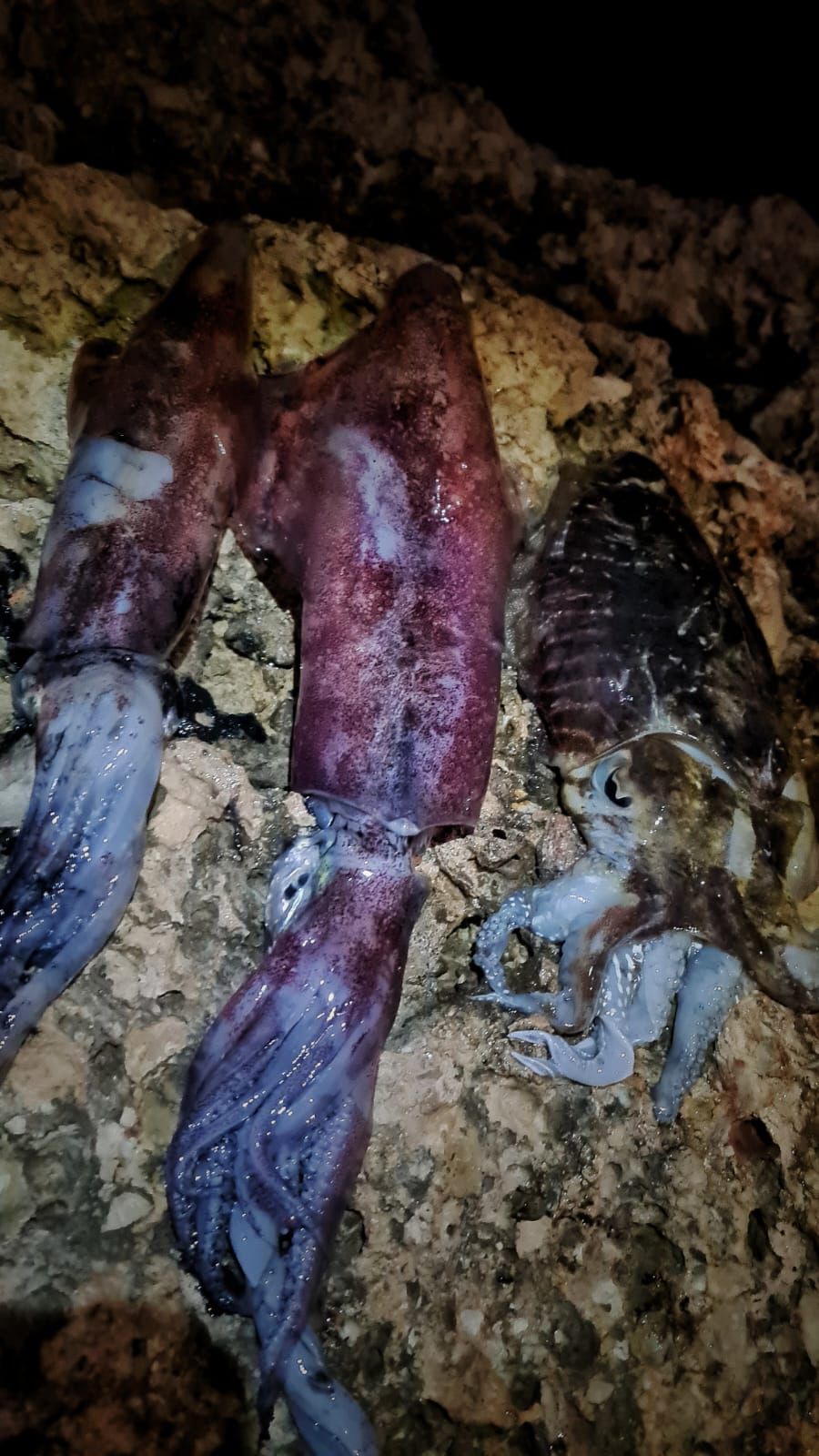 El calamar siempre lo busco a 12 y 20 metros en zonas de fondos mixtos, algas y rocas. Las sepias a poco fondo, sobre los 3 y 10 metros en fondos de arena y alga.