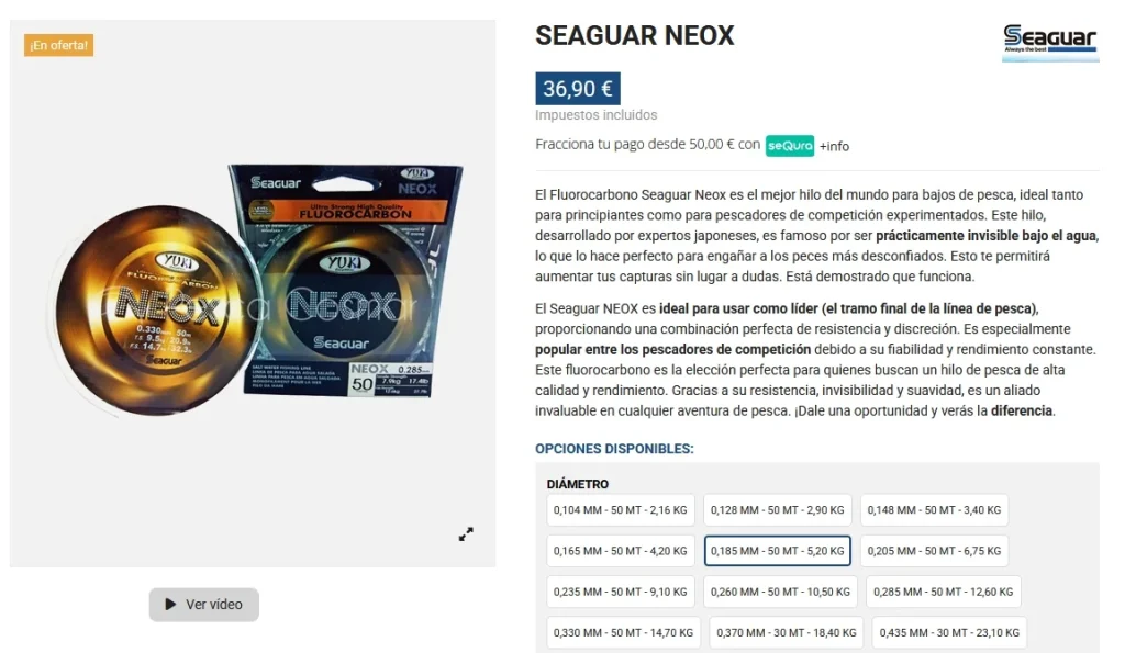 Por lo general se suelen utilizar hilos como estos de 0’10 hasta 0’14 mm, dependiendo también del tamaño de las lisas, el 0’16 mm – 0.20 mm suele venir mejor para cualquier ocasión.
