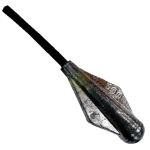 Se trata de un plomo con ganchos y aletas bastante aerodinámico y útil, ya que se fija muy bien en la arena, pudiendo recogerse con facilidad.