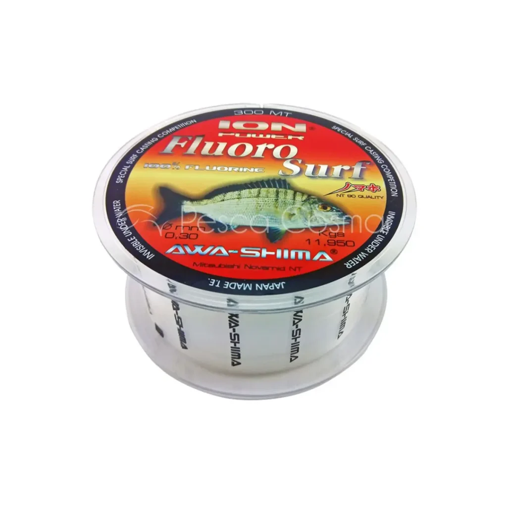 El hilo Ion FluoroSurf de Awa-Shima es un monofilamento de color cristal o transparente especialmente diseñado para pasar inadvertido bajo el agua. Su composición le confiere una muy elevada resistencia frente a la abrasión, así como a las duras condiciones de las aguas del mar y de los rayos solares.