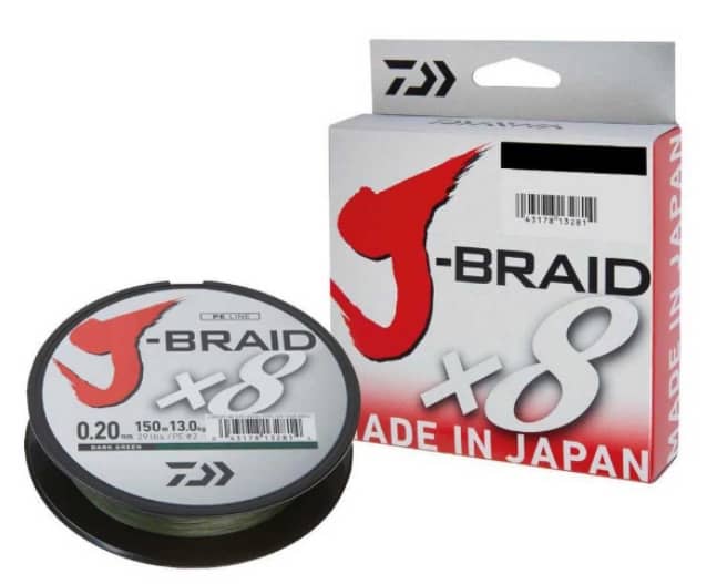 Línea Principal: Línea trenzada es la mejor opción por su baja elasticidad, alta resistencia y sensibilidad. Grosor recomendado: PE 1.5 a PE 3.0 dependiendo del tamaño del señuelo y las especies objetivo. Sin duda, el Daiwa J-Braid X8 en 0,28 mm puede ser una gran elección.