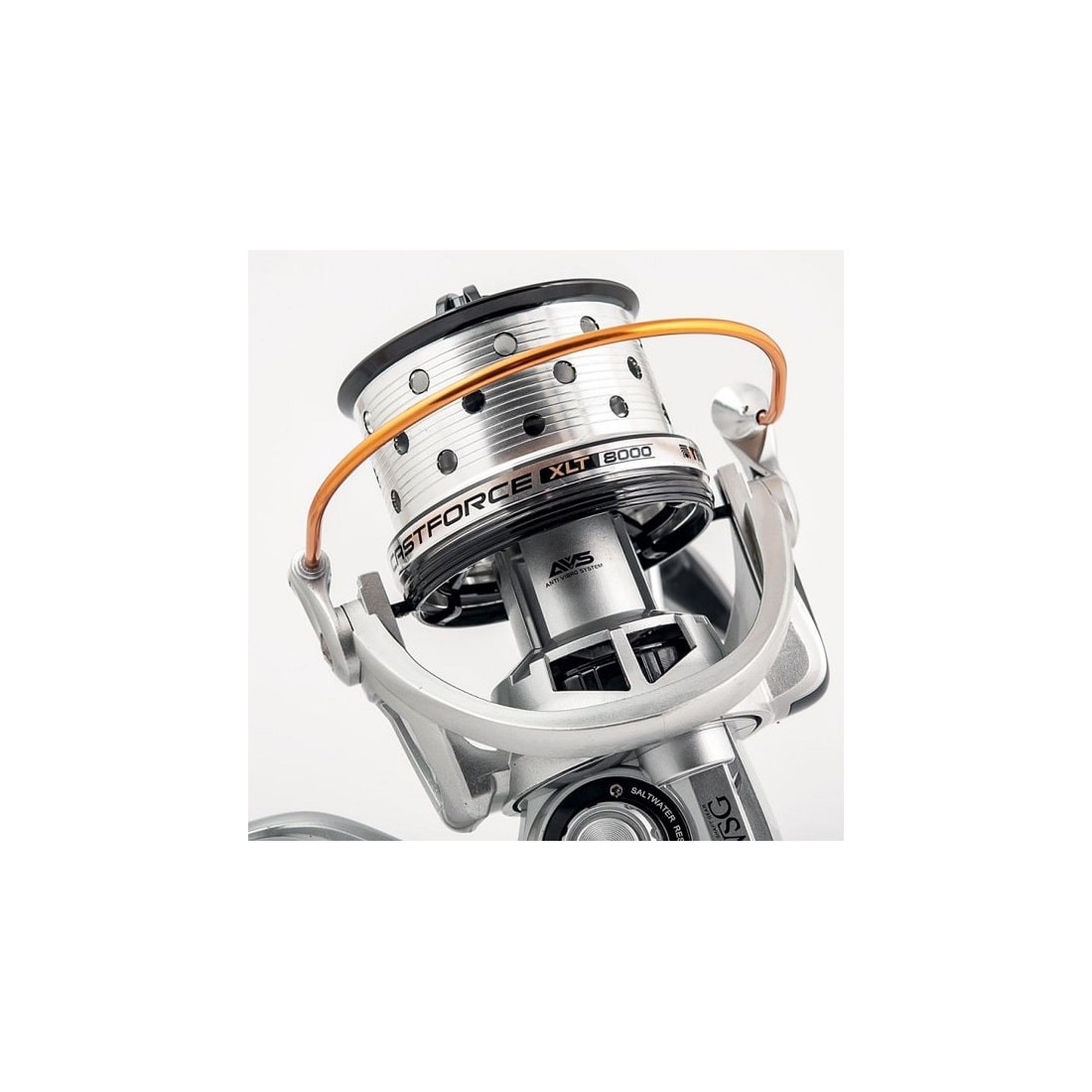 La serie XLT es la única que ofrece dos tamaños: 6500 para surf ligero y Beach Legering, 8000 para el casting clásico de largo alcance. Su manivela muy ligera y elegante se obtiene mediante una máquina CNC a partir de una barra sólida de aluminio. El rotor ha sido diseñado por ordenador para obtener un equilibrio perfecto. Gracias a su precio muy ajustado en relación a su alto nivel de prestaciones, el modelo Castforce XLT SRF 8000 se ha hecho muy popular entre los pescadores.