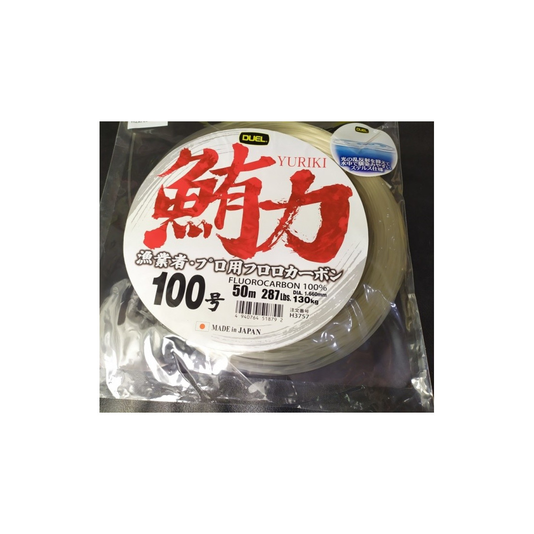 El hilo de fluorcarbono Duel Yuriki FC está diseñado para la pesca de grandes depredadores como atunes, serviolas, dentones, pargos, meros, marlín, etc. Usado en la pesca de fondo, curricán costero y curricán de altura así como en Big Game.
