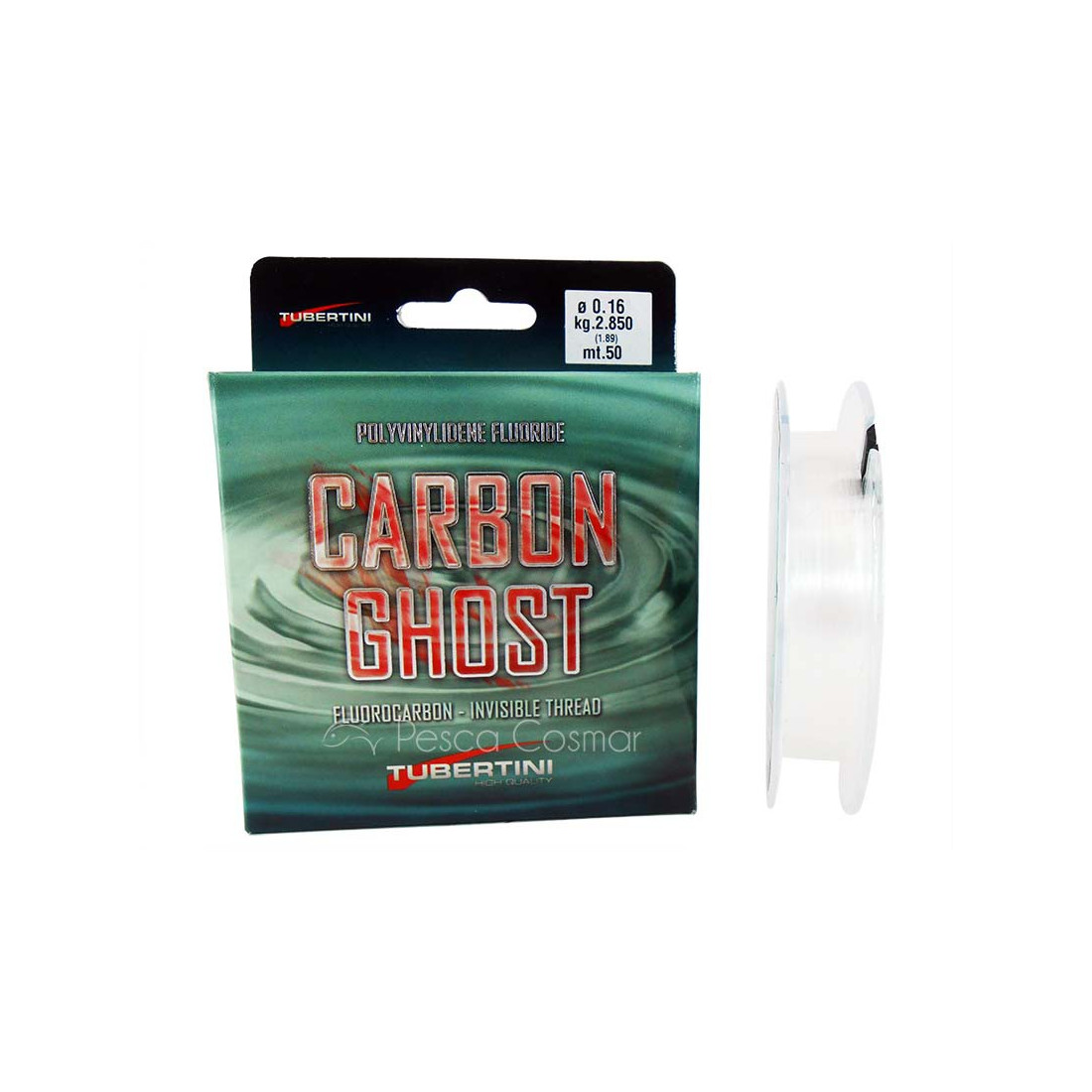 Tubertini Carbon Ghost imita de forma excelente la refracción de la luz en el agua, haciéndolo prácticamente invisible, además su resistencia a la fricción es realmente destacada, convirtiéndola en una línea resistente y manejable ideal para realizar nudos, por último está cubierto con una capa superficial de UV para evitar el desgaste del agua salada y el calor.