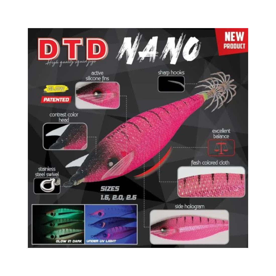 Además, cuenta con un excelente equilibrio que garantiza un despliegue efectivo en el agua. Equipado con anzuelos fuertes, este señuelo es ideal para soportar la lucha de los calamares más grandes. Con un peso de 9,8 gramos y una longitud de 70 mm, la Jibionera DTD Nano es garantía de éxito en la pesca del calamar desde barco.