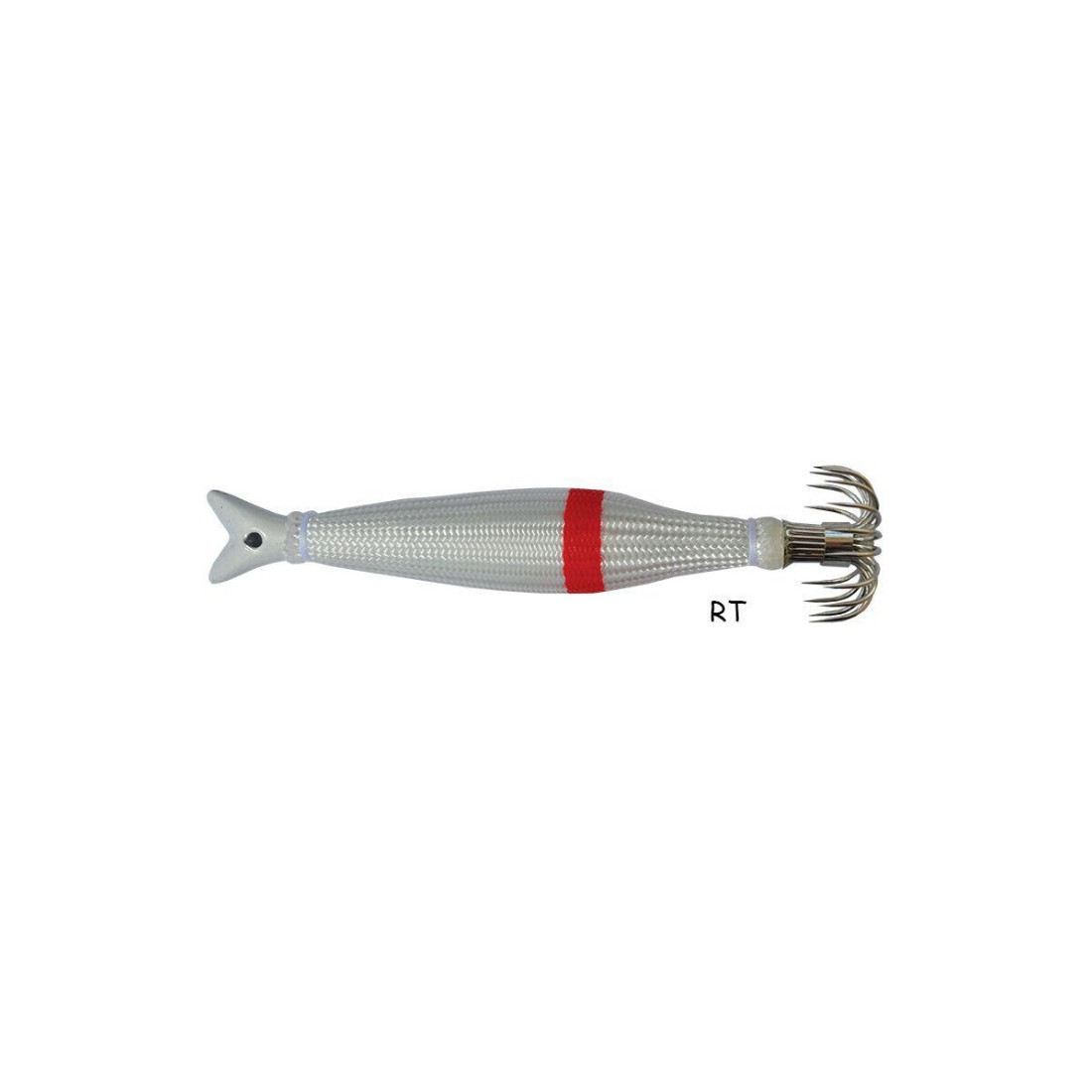 Jibionera DTD Spanjolac 75g - Disponible en dos colores: Blanco y rojo o Blanco con línea roja. Ideal para su uso como señuelo-plomo de bajo del calamar. Pesca de calamar y la sepia.