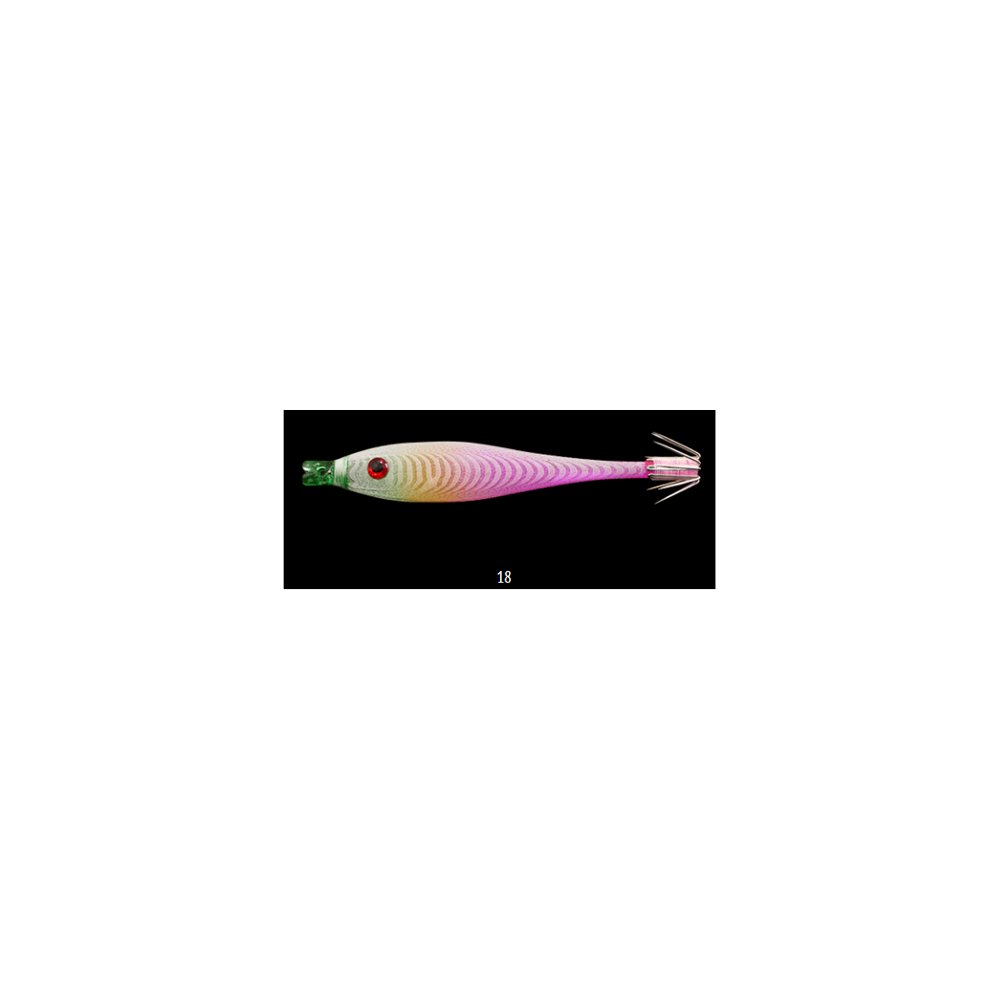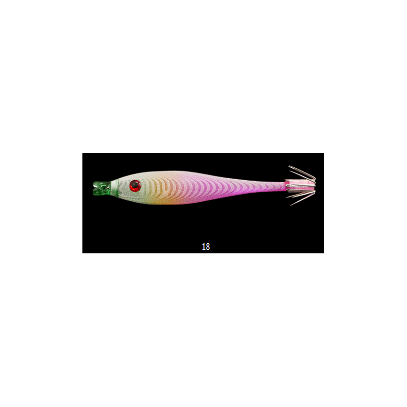 Fishus Elochibi es un señuelo de colores brillantes tremendamenet efectivo para la pesca del calamar. Corona simple como colores atractivos (verde, amarillo y lila degradados) y efecto GLOW UV (luminoso bajo el agua) que potencia su poder de atracción para la pesca de calamares y sepias.