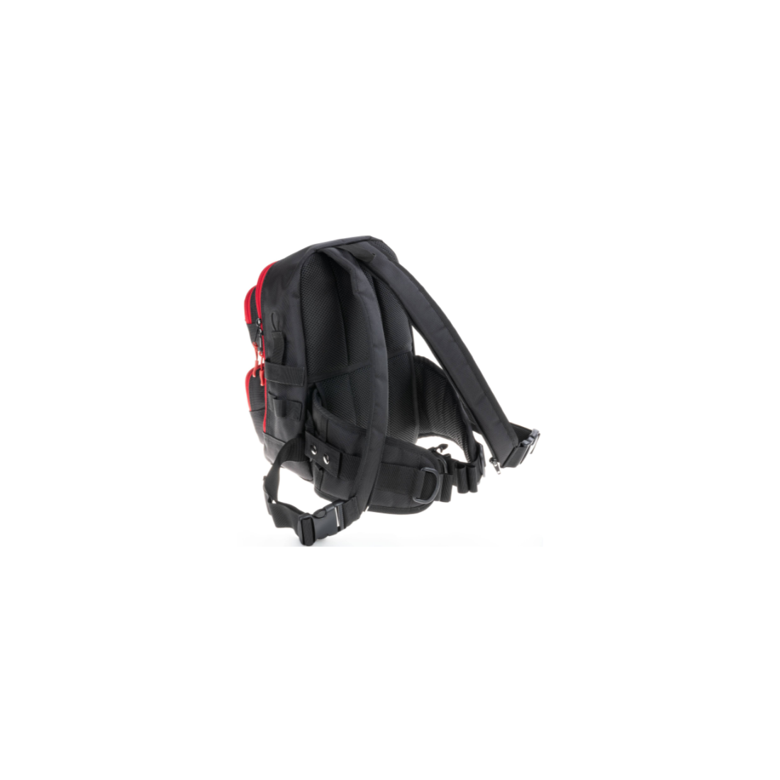 Porta-herramientas: Cinchas laterales externas para llevar alicates o grips a mano.