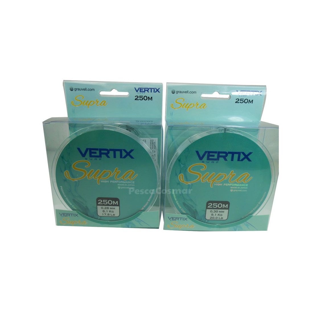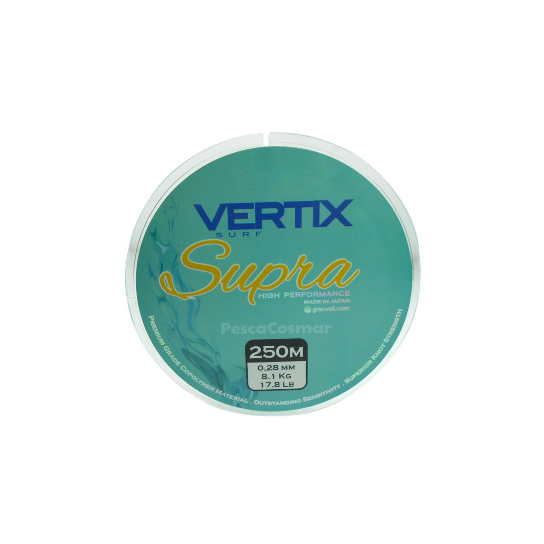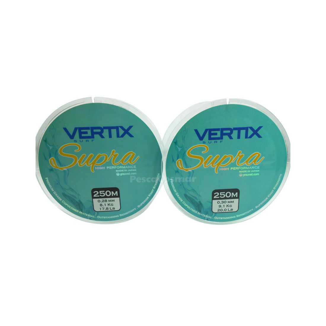 Los hilos de pesca Vertix Surf Supra, como su nombre lo indica está diseñado especialmente para la pesca a Surfcasting, teniendo una gran resistencia al mar y los rayos UV.