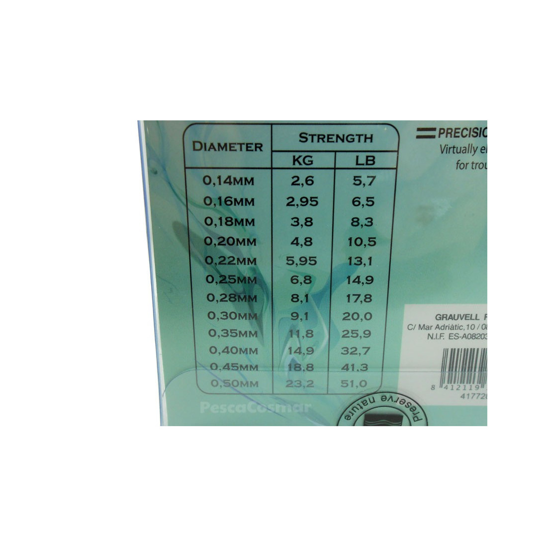 Es de color transparente y casi invisible bajo el agua, su suavidad y diámetro balanceado promueven lanzamientos fluidos y largos, perfecto para saltar las olas olímpicamente sin mayor esfuerzo.