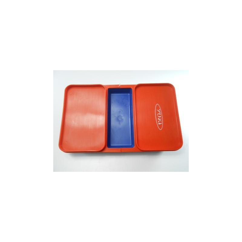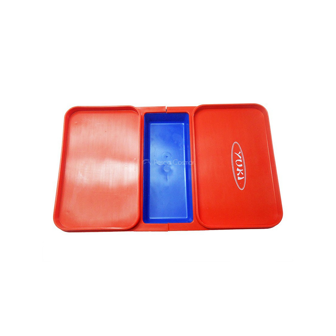La caja portacebos Jolly Yuki trae en su base un aplique de rosca para facilitar el enganche. Puede ser utilizada como mesa portátil debido a su sistema de cajones. Es ideal para tener los cebos a mano.